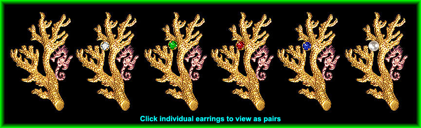 | Large Coral-Branch Earrings, Pink-Gold Seahorses with Curled-Back Tails, Plain or with Precious Stones... H. 1-1/4" Design © Whitfield Jack, Key West, FL |