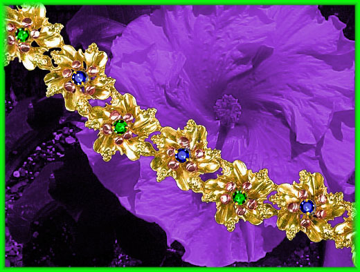 Whitfield Jack's Conch-Hibiscus Bracelet with Emeralds and Sapphires