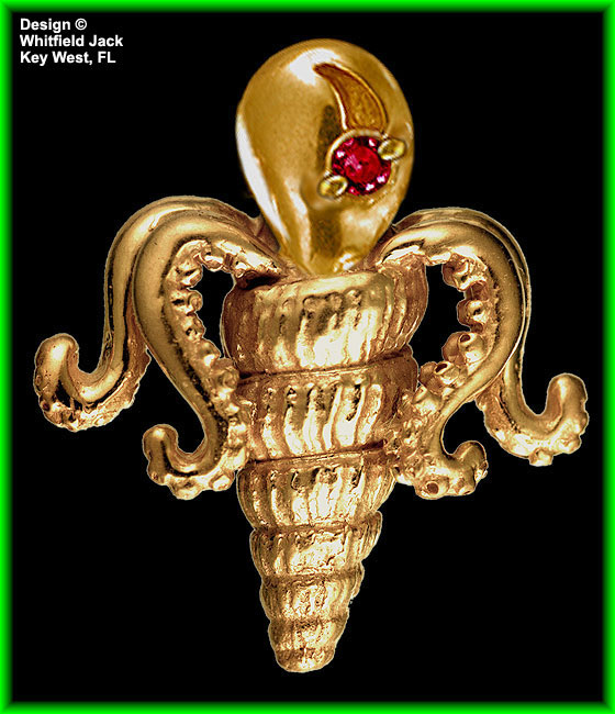 Baby Octopus in Florida Horn Shell - pendant and earrings