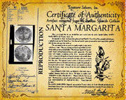 | PO-8 | Piece O' Eight Margarita Replica with copy of Mel Fisher's Certificate of Authenticity and of certificate text re-written for clarityPi |