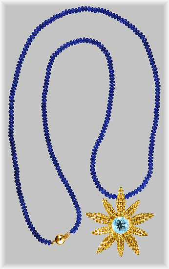 Whitfield Jack Pendants Shown above: Sapphires, 2-1/2 mm. to 3 mm. Sorry, but our precious stone beads are only sold in the store. |
