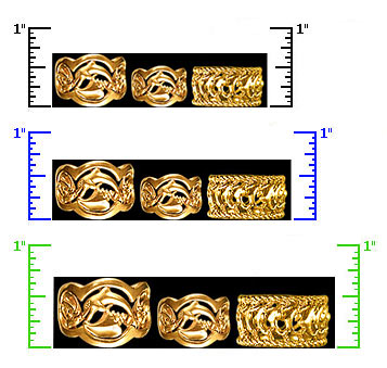 For actual size, print this page. Then compare the size of the three printed rulers with an actual ruler. The closest match shows the jewelry at approximately actual size. Ignore the other pictures.