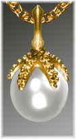 click 12 mm x 14 mm White South Seas Pearl. Emerald eye. 18K gold. Federal Copyright # VA 956-757 |