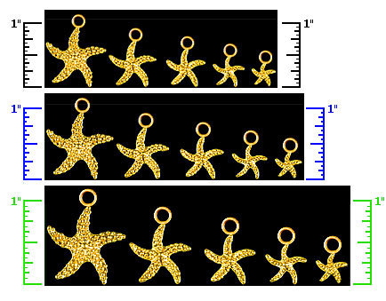 For actual size, print this page. Then compare the size of the three printed rulers with an actual ruler. The closest match shows the jewelry at approximately actual size. Ignore the other pictures.