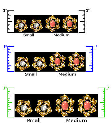 For actual size, print this page. Then compare the size of the three printed rulers with an actual ruler. The closest match shows the jewelry at approximately actual size. Ignore the other pictures.