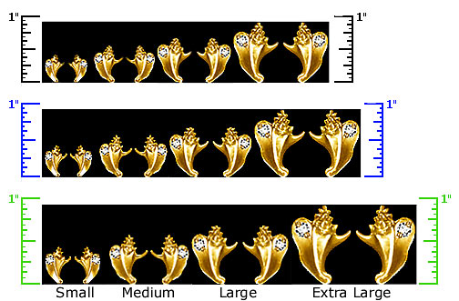 For actual size, print this page. Then compare the size of the three printed rulers with an actual ruler. The closest match shows the jewelry at approximately actual size. Ignore the other pictures.