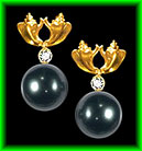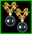 click 18K gold Dolphin Jackets. 12 mm Natural Black Tahitian Pearls. Diamonds. |