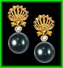click Key West Conchs. 8 Pt. diamonds. 9 to 9.75 mm Black Tahitian Pearls. |