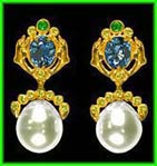 click 22K gold. Oval sapphires. 2.87 carats total. Emeralds. Yellow diamonds. 12 mm South Seas Pearls. |