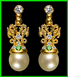 click 11K Seahorse ear- ring Jackets. Dia- monds, emeralds South Seas Pearls |