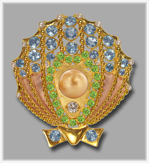18K Gold Scallop, 14K Rose Gold Side Panels