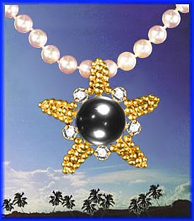 | 271P. | Starfish pendant with diamonds and natural color Tahitian Black Pearl size approximately 12 mm round. Total diamond weight 40 points. SI1 GHI. 18K gold. Price dependent on pearl availability. Please inquire. Also available with emeralds, rubies, or sapphires. | 2573 to 6051 |